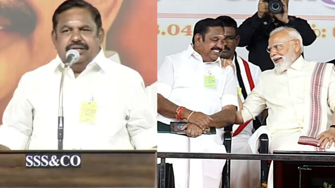 கோவையில் இன்று (ஏப்ரல் 18) அதிமுக-பாஜகவின் என்டிஏ கூட்டணி பொதுக்கூட்டம் நடைபெற்றது. இதில் பிரதமர் மோடி, அதிமுக பொதுச்செயலாளர் எடப்பாடி பழனிச்சாமி, நயினார் நாகேந்திரன், எல்.முருகன், அண்ணாமலை, வானதி சீனிவாசன் உள்ளிட்டோர் பங்கேற்றனர்.