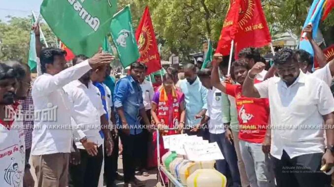 நடக்க இருக்கும் சட்டமன்றத் தேர்தலை முன்னிட்டு நாம் தமிழர் கட்சியின் வேட்பாளர் ஆசிரியருமான கவிதா சங்கரன்கோவில் நகரப் பேருந்து நிலையம் அருகே உள்ள முப்படாதி அம்மன் கோவிலில் சுவாமி தரிசனம் செய்தனர். பின்பு திருவேங்கடம் சாலையில் சுமார் 50க்கும் மேற்பட்டவர்கள் கட்சி தொண்டர்களுடன் பேரணியாகச் சென்றபோது குடிநீர் பிரச்சனைகள் உள்ளிட்ட அடிப்படை பிரச்சனைகளைச் சுட்டிக்காட்டும் விதமாக வேட்பாளரைத் தள்ளு வண்டியில் அதன் வண்டியில் ஏழு காலி குடங்களுடன் சிறு சிறு வாசகங்கள் அடங்கிய பதாகைகளை வைத்து தள்ளுவண்டியைத் தள்ளிச் சென்றனர்.