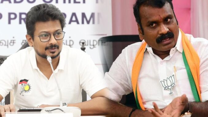 தற்போது தனது புதல்வர் உதயநிதி ஸ்டாலின் பங்கேற்ற அரசு விழாவில் தமிழ்த்தாய் வாழ்த்து தவறாக பாடப்பட்டுள்ளதே அதற்கு மு.க.ஸ்டாலின் என்ன பதில் சொல்லப்போகிறார்? தான் கலந்து கொண்ட அரசு விழாவில் தமிழ்த்தாய் வாழ்த்து தவறாக பாடப்பட்டதற்கு பொறுப்பேற்று உதயநிதி ஸ்டாலின் பதவி விலகுவாரா? அல்லது தனது புதல்வர் உதயநிதி ஸ்டாலினை மு.க.ஸ்டாலின் பதவி நீக்கம் செய்து விடுவாரா?