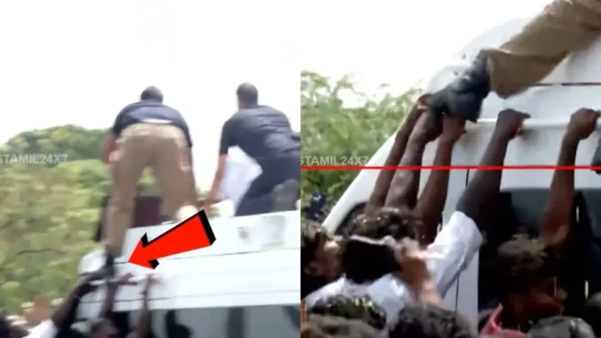 இதை தொடர்ந்து விஜய் பிரச்சார வாகனத்தில் தொங்கிய படி பல தொண்டர்கள் சென்றனர்.. ஆபத்தை உணராமல் தவெக தொண்டர்கள் விஜய் வாகனத்தில் தொங்கிக் கொண்டு சென்ற சம்பவம் அதிர்ச்சியை ஏற்படுத்தியது.. ஆனால் இதை விட அதிர்ச்சியான சம்பவம் அரங்கேறியது.. விஜய் பிரச்சார வாகனத்தில் தொங்கிக் கொண்டு சென்ற தவெக தொண்டர்களின் கைகளை விஜய்யின் பவுன்சர்கள் பூட்ஸ் காலால் எட்டி உதைத்தும், ப்ரீஃப் கேஸ் தட்டியும் விடுகின்றனர்.. இது தொடர்பான வீடியோ இணையத்தில் வைரலாகி வருகிறது..