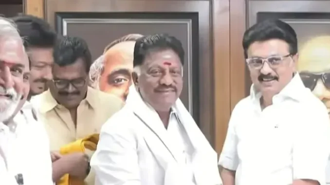 அதிமுகவின் தலைமைப் பொறுப்பில் இருந்தவரும், ஜெயலலிதாவின் தீவிரவ் விசுவாசியும், 3 முறை முதல்வருமான ஓபிஎஸ் இன்று முதல்வர் மு.க ஸ்டாலின் தலைமையில் திமுகவில் இணைந்தார்.. தமிழ்நாட்டின் அரசியல் வரலாற்றில் ஒரு கட்சியில் 3 முறை முதலமைச்சராக பதவி வகித்தவர் வேறொரு கட்சியில் இணைந்தது இதுவே முதல்முறை..