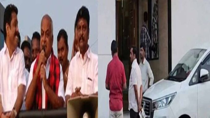 இந்த பரபரப்பான சூழலில், கரூர் திமுக வேட்பாளர் நிறுவனத்தில் வருமான வரித்துறையினர் இன்று (12-04-26) அதிரடியாக சோதனை நடத்தினர். கரூர் சட்டமன்றத் தொகுதியில் திமுக சார்பாக தியாகராஜன் என்பவர் போட்டியிடுகிறார். தேர்தலை ஒட்டி, தீவிர வாக்கு சேகரிப்பில் ஈடுபட்டு வரும் தியாகராஜனுக்கு சொந்தமான ஜவுளி நிறுவனத்தில் 10க்கும் மேற்பட்ட வருமான வரித்துறை அதிகாரிகள் இன்று சோதனை நடத்தி வருகின்றனர்.