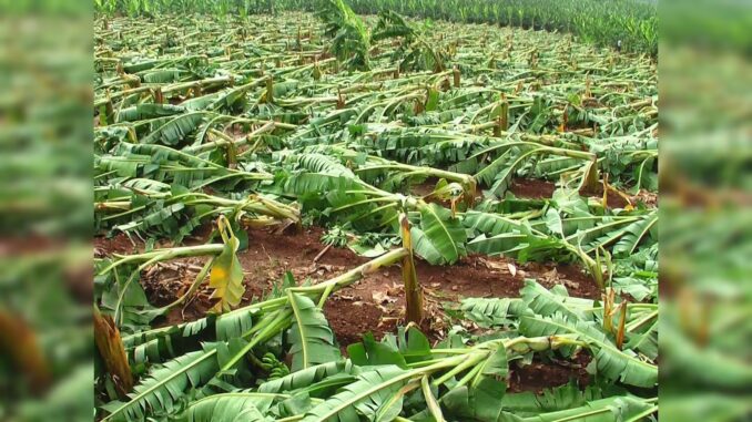 திருச்சி மாவட்டம் தொட்டியம் மற்றும் அதன் சுற்றுவட்டாரப் பகுதிகளில் கடந்த சில நாட்களாக வீசிய பலத்த காற்றுடன் கூடிய கோடை மழையினால் ஆயிரக்கணக்கான வாழை மரங்கள் முறிந்து விழுந்து பலத்த சேதமடைந்துள்ளன. ஏற்கனவே சந்தையில் வரத்து அதிகரிப்பு மற்றும் சர்வதேசப் போர் பதற்றங்களால் ஏற்றுமதி பாதிக்கப்பட்டு வாழைத்தார்களின் விலை வீழ்ச்சியடைந்துள்ள நிலையில், இந்த இயற்கை சீற்றம் விவசாயிகளின் வாழ்வாதாரத்தை நிலைகுலையச் செய்துள்ளது. வழக்கமாக வீசும் பலத்த காற்று இந்த ஆண்டு ஒரு மாதத்திற்கு முன்னதாகவே வீசத் தொடங்கியுள்ளதால், அறுவடைக்குத் தயாராக இருந்த தோட்டங்கள் பெரும் பாதிப்புக்கு உள்ளாகியுள்ளன.