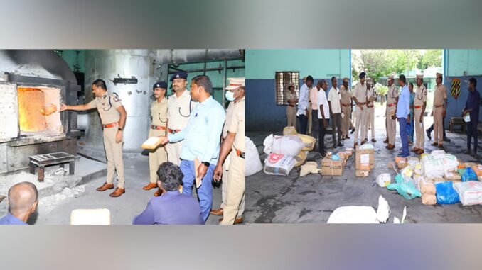 அந்த கஞ்சாவினை அழிக்க சம்பந்தப்பட்ட நீதிமன்றங்களின் உத்தரவின்படி, சரக போதைப்பொருள் அழிப்பு குழுவின் (Drug Disposal Committee) பரிந்துரையின்படி, திருநெல்வேலி சரக டி.ஐ.ஜி. சரவணன் தலைமையில், திருநெல்வேலி மாவட்ட எஸ்.பி. பிரசண்ணகுமார் முன்னிலையில், திருநெல்வேலி மாவட்டம் விஜயநாராயணம் காவல் நிலைய சரகத்திற்குட்பட்ட பாப்பாங்குளம் கிராமம், பொத்தையடி பகுதியில் உள்ள ASEPTIC SYSTEMS BIO MEDICAL WASTE MANAGEMENT COMPANY என்ற தனியார் நிறுவனத்தில் வைத்து தீயிட்டு எரித்து அழிக்கப்பட்டன.
