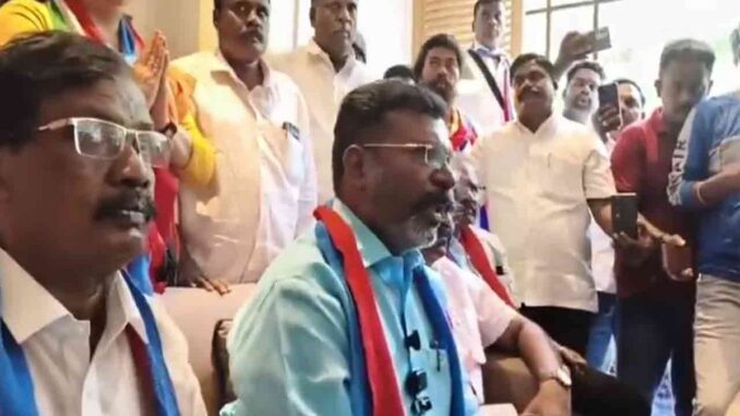 அதை திமுகவுக்கு ஆதரவாக செயல்பட்டார்கள். அதனால் திருமாவளவன் எடுத்துவிட்டார் என்கிறார்கள். அது உண்மை இல்லை. ஆனால் அப்படி சொல்லுவது உண்மையாக இருந்தால் நான் தி.மு.க. அழுத்தத்திற்கு பணிய மாட்டேன் என்றுதானே பொருள். இப்போது நான் வாபஸ் வாங்கின உடனே திமுக அழுத்தத்திற்கு பணிந்து விட்டேன் என்று சொல்வது எப்படி பொருத்தமாக இருக்க முடியும். இரண்டுமே முரண்பாடானது. எப்போதும் விடுதலை சிறுத்தைகளை குறிவைப்பது இந்த கூட்டணிக்குள் குழப்பத்தை ஏற்படுத்துவது எதிர்கட்சிக்காரர்களுக்கான கடமையாக, பொறுப்பாக இருக்கிறது. நோக்கமாக இருக்கிறது. அது எடுபடாது. திருமாவளவன் அப்படிப்பட்ட வதந்திகளுக்கு ஒருபோதும் இறையாக மாட்டார்”எனத் தெரிவித்தார்.