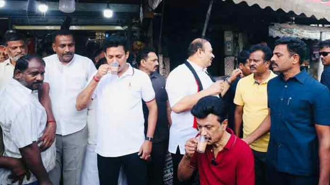 பின்னர் திருச்சி காந்தி மார்க்கெட்டுக்கு சென்ற அவர், அங்கு காய்கறி வியாபாரிகள், பொதுமக்களிடம் தி.மு.க. சார்பில் போட்டியிடும் இனிகோ இருதயராஜுக்கு வாக்கு சேகரித்தார். தொடர்ந்து சாலையோரம் இருந்த ஒரு தேநீர் கடையில் அவர் தேநீர் குடித்தார். இந்த நிலையில் இதனை குறிப்பிட்டு ‘தி.மு.க.வையும் டீக்கடைகளையும் பிரிக்கவே முடியாது’ என்று முதல்-அமைச்சர் மு.க.ஸ்டாலின் பதிவிட்டுள்ளார்.
