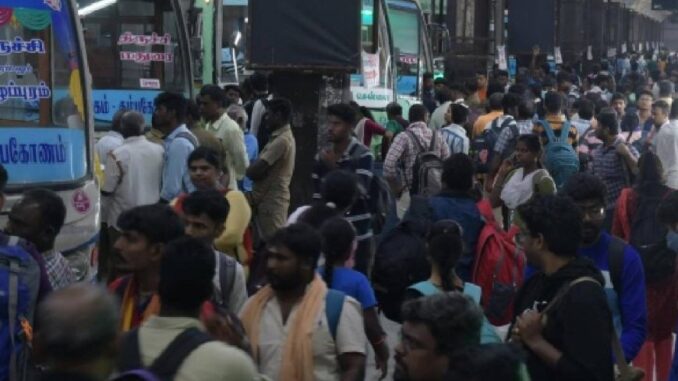 இன்று பேருந்துகள், ரயில்களில் மிகவும் அதிகமான கூட்டம் இருக்கும் என்பதால், நேற்று மாலையில் இருந்தே ஏராளமான மக்கள் சொந்த ஊருக்கு புறப்பட தொடங்கிவிட்டனர். இதன் காரணமாக சென்னையை அடுத்த தாம்பரம், பெருங்களத்தூரில் கடும் போக்குவரத்து நெரிசல் ஏற்பட்டது. இந்த நிலையில் கிளாம்பாக்கம் பேருந்து நிலையத்தில் ஒரே நேரத்தில் குவிந்த அதிக அளவிலான பயணிகள் சிறப்பு பேருந்துகளில் முண்டியடித்து ஏறி பயணம் செய்தனர்.