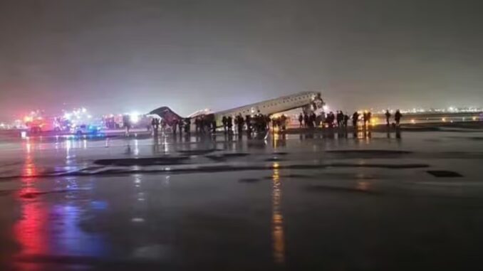 அமெரிக்காவின் நியூயார்க் நகரில் உள்ள லாகார்டியா விமான நிலையத்தில் ஏர் கனடா நிறுவனத்திற்கு சொந்தமான விமானம் விபத்தில் சிக்கியது. தரையிறங்கும் போது ஏற்பட்ட கோளாறால், விமானம் ஓடுதளத்தில் இருந்த தீ அணைப்பு வாகனத்தின் மீது மோதியதாக தகவல்கள் தெரிவிக்கின்றன.இந்த விபத்தில் விமானத்தின் முன்பகுதி சேதமடைந்தது. விமானத்தில் இருந்த சில பயணிகள் காயமடைந்ததாக கூறப்படுகிறது. காயமடைந்தவர்கள் உடனடியாக அருகிலுள்ள மருத்துவமனைகளில் அனுமதிக்கப்பட்டு சிகிச்சை பெற்று வருகின்றனர்.