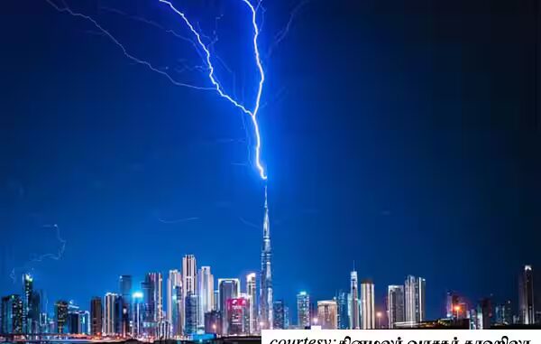உலகின் மிக உயரமான கட்டடமாக கருதப்படும் புர்ஜ் கலிபாவில் மின்னல் தாக்கியது. ஆனால் சேதம் ஏதுமில்லை.
