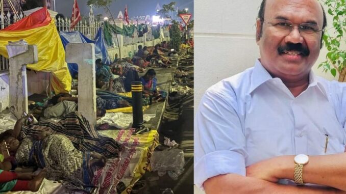 தனியாருக்கு குத்தகை விடுவதன் மூலம், அதுல கமிஷன் கிடைக்கும். தூய்மைப் பணியாளர்களின் வாழ்வாதாரம் எக்கேடு கேட்டாலும் என்கிற பரவாயில்லை என்கிற எண்ணத்தில் தான் அரசு உள்ளது. கடந்த சட்டமன்ற தேர்தலின் போது தூய்மைப் பணியாளர்கள் உட்பட அரசுத்துறையின் கீழ் பணிபுரியும் தற்காலிக ஊழியர்களை பணி நிரந்தரம் செய்வோம் என வாக்குறுதி அளித்தது திமுக. தூய்மைப் பணியாளர்களும் அந்த கோரிக்கையினை தான் நிறைவேற்ற சொல்றாங்க.