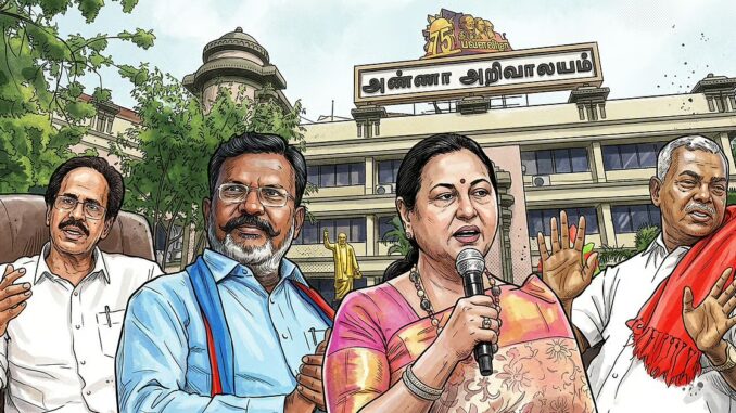 தேமுதிகவை பேச்சுவார்த்தைக்கே அழைக்காமல், இறுதியில் அவர்களை அழைக்கும் முடிவில் அறிவாலயம் இருப்பது இவர்களுக்கு சந்தேகத்தை கொடுத்திருக்கிறது. ‘கூட்டணிக்காக விட்டுக்கொடுங்க’ என இவர்களிடம் கையெழுத்து வாங்கிவிட்டு தேமுதிகவுக்கு அள்ளி கொடுத்தால் என்ன செய்வது என்கிற குழப்பமும் சங்கடமும் விசிகவுக்கும் கம்யூக்களுக்கும் இருக்கிறது’ என்கின்றனர் விவரப்புள்ளிகள்.