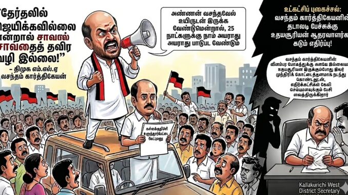 இதை விட்டுவிட்டால் உளுந்தூர்பேட்டை தொகுதியை காப்பாற்றவே முடியாது. எம்.எல்.ஏ வசந்தம் கார்த்திகேயனின் இந்தப் பேச்சு சர்ச்சையை ஏற்படுத்தியிருக்கும் நிலையில், “வசந்தம் கார்த்திகேயனின் விளம்பர மோகத்துக்கு அளவே இல்லையா ? அவரும் இந்த தேர்தலில் போட்டியிடுகிறார்.