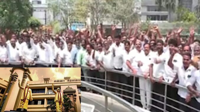 இந்நிலையில், தாம்பரம் தொகுதி திமுக எம்.எல்.ஏ.வாக எஸ்.ஆர்.ராஜா என்பவர் செயல்பட்டு வருகிறார். அவருக்கு தேர்தலில் போட்டியிட சீட் வழங்கப்படவில்லை. இதனால் ஆத்திரமடைந்த எஸ்.ஆர்.ராஜா ஆதவாளர்கள் இன்று சென்னையில் உள்ள திமுக தலைமை அலுவலகமான அண்ணா அறிவாலயத்தில் திடீரென திரண்டு ஆர்ப்பாட்டத்தில் ஈடுபட்டு வருகின்றனர்.