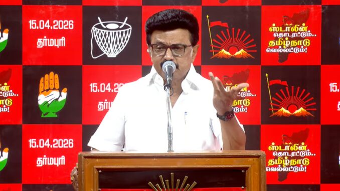தர்மபுரி அடுத்த தடங்கம் பகுதியில் நடைபெற்று வரும் பொதுக்கூட்டத்தில் திமுக தலைவரும், முதல்-அமைச்சருமான மு.க.ஸ்டாலின் திமுக கூட்டணி வேட்பாளர்களை அறிமுகம் செய்து, பிரசாரம் மேற்கொண்டார். அப்போது அவர் கூறியதாவது:-