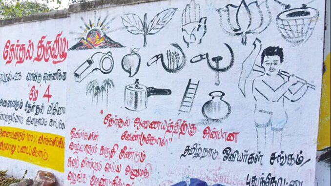 இதற்கிடையே தேர்தல் நேரங்களில் மட்டும் கிராம பகுதிகளில் சுவர் விளம்பரம் எழுதும் வாய்ப்பு தொழில்முறை ஓவியர்களுக்கு கிடைத்து வந்தது. ஆனால் தற்போது தேர்தல் ஆணையத்தின் கட்டுப்பாடு காரணமாக தேர்தல் காலத்திலும் முற்றிலும் வேலை வாய்ப்பு இழந்திருப்பதாக கூறி தொழில்முறை ஓவியர்கள் வேதனையில் உள்ளனர். மேலும் கட்டுப்பாடுகளை தளர்த்த வேண்டும் என்றும் கூறுகின்றனர்.