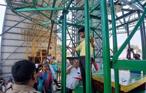 இதனையடுத்து, மாலையில், பொதுப்பணித்துறை (கட்டடம் மற்றும் பராமரிப்பு) உதவி செயற்பொறியாளர் பாலசுப்பிரமணியம் மற்றும் ஸ்தபதி ரவி ஆகியோர் ஆய்வு செய்தனர்.