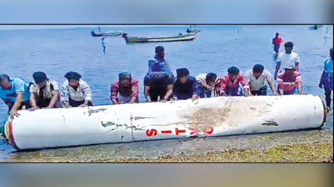 ராமநாதபுரம் மாவட்டம் தொண்டி அருகே நடுக்கடலில் ஒரு வாரத்திற்கு முன்பு நீண்ட உருளை போன்ற ஒரு பொருள் மிதந்தது. இதுபற்றி அறிந்த கடலோர பாதுகாப்பு குழும போலீசார் கடலுக்குள் சென்று பார்த்தனர். அது ராக்கெட் அல்லது ஏவுகணையின் உதிரிப்பாகம் என்பது தெரியவந்தது.