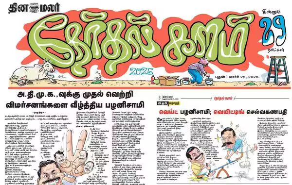 தினமலர் நாளிதழுடன், 8 பக்கங்கள் கொண்ட ‘தேர்தல் களம்’ இணைப்பு மலரும் தினமும் வெளியாகி வருகிறது. அரசியல் சூடு பறக்கும் தேர்தல் களம் பகுதியை மிஸ் பண்ணிடாதீங்க!
