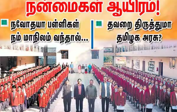 மூச்சுக்கு மூச்சு, மத்திய பாஜ அரசை எதிர்க்கும் கேரள அரசும், மேற்கு வங்க அரசும் கூட, நவோதயா பள்ளிகளால் கிடைக்கும் நன்மையை கருத்தில் கொண்டு, அவற்றை செயல்படுத்தி வருகின்றன. ஆனால், தமிழக அரசு மட்டும் வீம்புக்காக, நவோதயா பள்ளிகளை வர விடாமல் தடுத்துக் கொண்டிருக்கிறது. ஏழை, கிராமப்புற மாணவ, மாணவியரின் எதிர்காலத்தை கருத்தில் கொண்டு, நவோதயா பள்ளிகளை தமிழகத்திலும் அமைக்க மாநில அரசு ஒத்துழைக்க வேண்டும்.