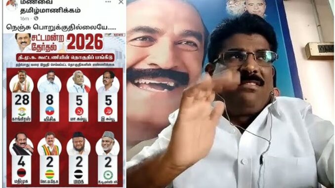 திமுக கூட்டணியில் மதிமுகவுக்கு விசிக, கம்யூனிஸ்ட் கட்சிகளை விட குறைவான தொகுதிகள் ஒதுக்கப்பட்டுள்ளதற்கு, ‘நெஞ்சு பொறுக்குதில்லையே’ என மதிமுக மாவட்டச் செயலாளர் ஒருவர் முகநூலில் தனது ஆதங்கத்தை வெளிப்படுத்தியுள்ளார்.