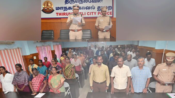 நெல்லை மாநகர காவல் அலுவலகத்தில் போலீஸ் கமிஷனர் தேஷ்முக் சேகர் சஞ்சய் தலைமையில், போலீஸ் துணை கமிஷனர் (மேற்கு) விஜயகுமார், காவல்துறையினர் மற்றும் அமைச்சு பணியாளர்கள் சமத்துவ நாள் உறுதி மொழி எடுத்து கொண்டனர்.