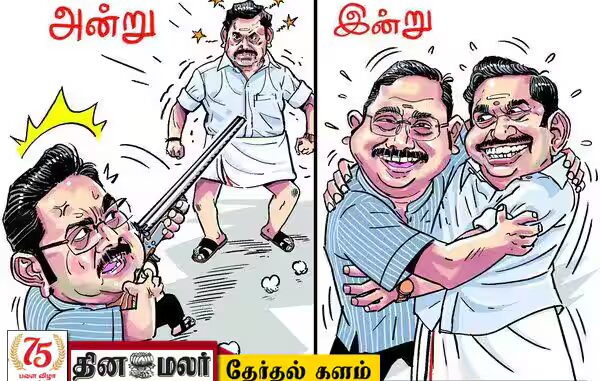 தே.ஜ., கூட்டணியில் தினகரனின் அ.ம.மு.க.,வும் உள்ளது. ஆனாலும், அ.தி.மு.க., பொதுச்செயலர் பழனிசாமியும், தினகரனும் பரஸ்பரம் ஆதரித்து பிரசாரம் செய்வதை தவிர்த்து வந்தனர்.