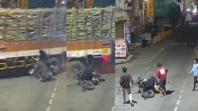 பள்ளிபாளையம் அருகே கோர விபத்து: லாரி-இருசக்கர வாகனம் மோதல் – பதற வைக்கும் சிசிடிவி காட்சி