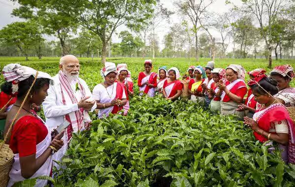 தேயிலை தோட்ட தொழிலாளர்களின் முக்கிய பிரச்னைகள் குறித்து கேட்டறிந்தார். குறிப்பாக கல்வி, சுகாதாரம், ஊதியம் ஆகியவை குறித்து அவர்களுடன் விவாதித்தார். பின்னர், தேயிலை தோட்ட தொழிலாளர்களின் பாரம்பரிய ஜுமுர் நடனத்தையும் பிரதமர் மோடி கண்டுகளித்தார்.