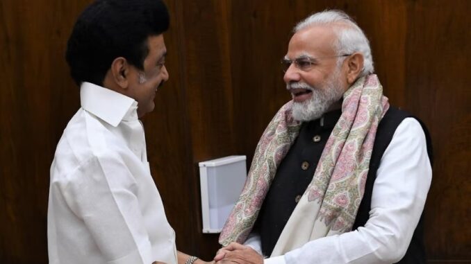 புது டெல்லியின் சவுத் ப்ளாக்கில் உள்ள பிரதமரின் அலுவலகத்தில் முதல்வர் ஸ்டாலின் பிரதமர் மோடியைச் சந்தித்துப் பேசினார். தமிழகத்துக்கு சமக்ரா சிக்ஷா என்ற ஒருங்கிணைந்த கல்வித் திட்டத்தின் கீழ் வழங்க வேண்டிய நிலுவைத் தொகையை உடனே விடுவிக்க வேண்டும், சென்னையில் செயல்படுத்தப்பட்டு வரும் மெட்ரோ ரயில் 2ம் கட்டத் திட்டப் பணிகளுக்கான நிதியை உடனே வழங்க வேண்டும், இலங்கையில் சிறை பிடிக்கப்பட்டுள்ள தமிழக மீனவர்களை விடுவிக்க நடவடிக்கை எடுக்க வேண்டும் என்பது உள்ளிட்ட கோரிக்கைகள் அடங்கிய மனுவை வழங்கினார்.