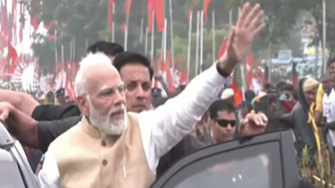 பின்னர் கார் மூலம் அஜந்தா சிக்னல் சந்திப்புக்கு செல்லும் பிரதமர் மோடி, அங்கிருந்து திறந்த வாகனத்தில் ஏறி ‘ரோடு ஷோ’ நிகழ்ச்சியில் கலந்து கொண்டு தேசிய ஜனநாயக கூட்டணி கட்சி வேட்பாளர்களுக்கு ஆதரவு திரட்ட உள்ளார். இந்த ரோடு ஷோ நிகழ்ச்சி ராஜா தியேட்டர் சந்திப்பு வரை நடைபெற உள்ளது.