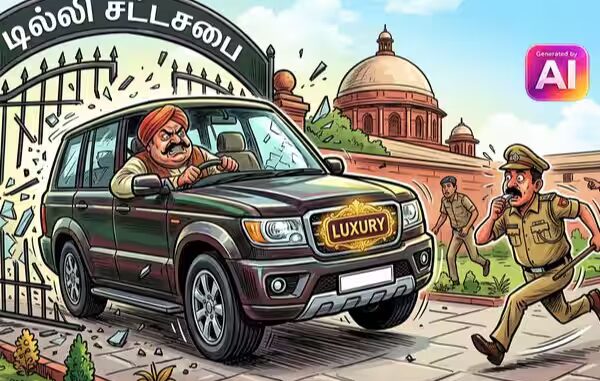 புதுடில்லி:டில்லி சட்டசபை வளாகத்தில் தன் சொகுசு காரில் சென்று, கேட்டில் மோதி, உள்ளே நுழைந்து, சபாநாயகர்