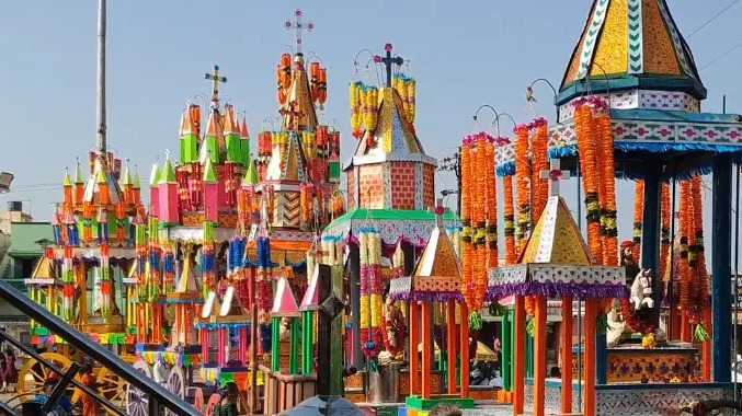 தேர்பவனி ஊர்வலத்தின் போது இயேசு கிறிஸ்து ஆண்டவருக்கு உப்பு மிளகு சூரையிட்டும், ரூபாய் நோட்டு மாலை அணிவித்தும், பக்தர்கள் வழிபட்டனர்.