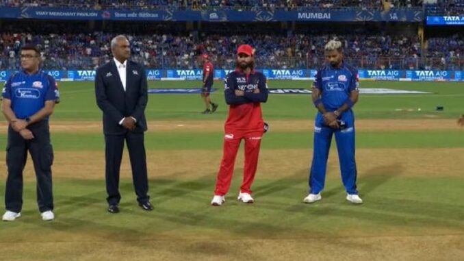 இந்த போட்டிக்கான டாஸ் போடப்பட்டது. அதில் டாஸ் வென்ற மும்பை அணியின் கேப்டன் ஹர்திக் பாண்டியா பந்துவீச்சை தேர்வு செய்தார். அதன்படி பெங்களுரு அணி முதலில் பேட்டிங் செய்கிறது.