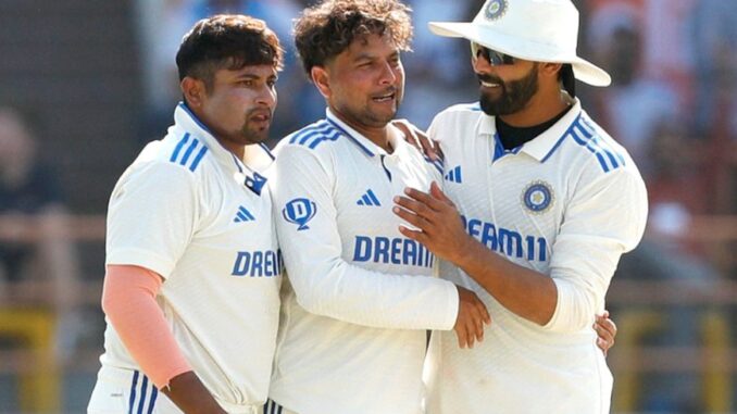 இந்தியா – இங்கிலாந்து இடையேயான 3-வது டெஸ்ட் போட்டி ராஜ்கோட்டில் கடந்த 15-ம் தேதி தொடங்கியது. இதில் டாஸ் வென்று முதலில் பேட்டிங் செய்த இந்திய அணியில் ரோஹித் சர்மா, ஜடேஜாவின் அபார சதம மற்றும் அறிமுக வீரர் சர்பராஸ் கானின் அரை சதத்தின் மூலம் முதல் இன்னிங்சில் 445 ரன்கள் குவித்தது. பின்னர் தனது முதல் இன்னிங்சை தொடங்கிய இங்கிலாந்து அணி 319 ரன்களில் அனைத்து விக்கெட்டுகளையும் இழந்து ஆட்டமிழந்தது.