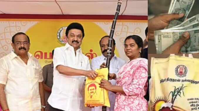 ஜெயலலிதா முதல்வராக இருந்த காலக்கட்டத்தில் அதிமுக ஆட்சியில் ஒவ்வொரு ஆண்டும் பொங்கல் பரிசு தொகுப்பு வழங்கப்பட்டு வருகிறது. கடந்த ஆண்டு பொங்கலுக்கு, குடும்அட்டைதாரர்களுக்கு தலா 1 கிலோ பச்சரிசி, சர்க்கரை, முழு கரும்பு அடங்கிய பரிசு தொகுப்பு வழங்கப்பட்டது. இதில், பணம் இடம்பெறவில்லை.