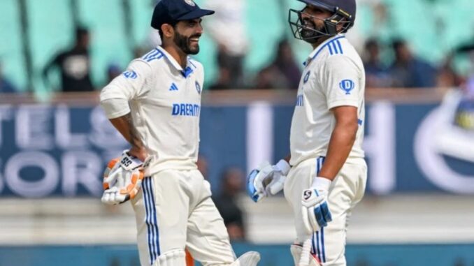 33 ரன்களுக்கு 3 விக்கெட் இழந்து இந்திய அணி தடுமாறிக்கொண்டிருந்த நிலையில், கேப்டன் ரோகித் ஷர்மாவுடன் ஜோடி சேர்ந்த ரவீந்திர ஜடேஜா அபாரமாக விளையாடினார். இன்றைய ஆட்டத்தில் ரோகித் தனது 11வது டெஸ்ட் சதத்தை நிறைவு செய்தார். அவர் 131 ரன் எடுத்திருந்த நிலையில் மார்க் வுட் பந்து வீச்சில் ஆட்டமிழந்தார். இதையடுத்து, ஜடேஜாவுடன் சர்ஃபராஸ் கான் ஜோடி சேர்ந்தார்.