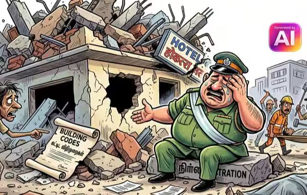 சம்பவம் குறித்து அப்பகுதியைச் சேர்ந்த கடைக்காரர் ஒருவர் கூறுகையில், ‘ஹோட்டல் கட்டடம் அருகே பழைய கட்டடம் ஒன்று இடிக்கப்பட்டு, அங்கு புதிய கட்டிடம் அமைக்க ஆழமான குழி தோண்டப்பட்டிருந்தது. இதன் காரணமாக ஹோட்டல் கட்டடத்தின் அடித்தளம் பாதிக்கப்பட்டிருக்கலாம். முதலில் கட்டடத்தின் ஒரு பகுதி சாய்ந்து பின் முற்றிலும் இடிந்து விழுந்தது’ என்றார்.