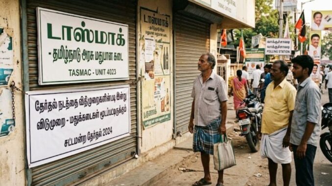 மேலும், இந்த நான்கு நாட்களிலும் விற்பனை மட்டுமின்றி, மதுபான தயாரிப்பு, மதுபானங்களை வாகனங்களில் கொண்டு செல்லுதல் என அனைத்து வகையான நடவடிக்கைகளுக்கும் தேர்தல் ஆணையம் தடை விதித்துள்ளது.
