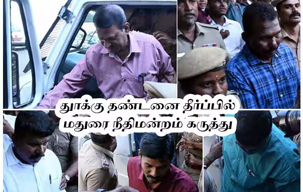 துாத்துக்குடி மாவட்டம், சாத்தான்குளம் வியாபாரிகள் ஜெயராஜ், அவரது மகன் பென்னிக்ஸ், போலீசாரால் அடித்துக் கொல்லப்பட்டனர். இந்த வழக்கில், இன்ஸ்பெக்டர் ஸ்ரீதர், எஸ்.ஐ.க்கள் பாலகிருஷ்ணன், ரகு கணேஷ் உள்ளிட்ட ஒன்பது போலீசாருக்கு துாக்கு தண்டனை விதித்து, மதுரை முதலாவது கூடுதல் அமர்வு நீதிமன்ற நீதிபதி முத்துக்குமரன் உத்தரவிட்டார்.