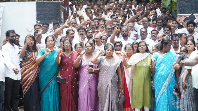 ஆனால், அவருக்கு வாய்ப்பு மறுக்கப்பட்டதுடன் தொகுதியும் கூட்டணி கட்சியான சி.பி.எம்-க்கு ஒதுக்கப்பட்டது. இது மனோ தங்கராஜ் ஆதரவாளர்களுக்கு அதிர்ச்சியை ஏற்படுத்தியிருந்தது. இந்த நிலையில் நேற்று கன்னியாகுமரி மேற்கு மாவட்ட தி.மு.க அலுவலகத்தில் கட்சி நிர்வாகிகளும், மனோதங்கராஜின் ஆதரவாளர்களும் கூடினர்.