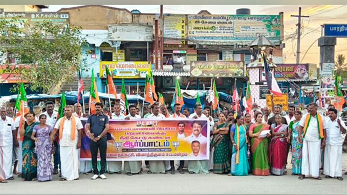 இதனை கண்டித்து தேசிய ஜனநாயகக் கூட்டணி சார்பில் விளாத்திகுளம் பேருந்து நிலையம் முன்பு கண்டன ஆர்ப்பாட்டம் நடைபெற்றது. பாஜக மாவட்ட தலைவர் சரவண கிருஷ்ணன், மாவட்ட பொதுச்செயலாளர் வேல்ராஜா, மாநில செயலாளர் போத்தீஸ் ராமமூர்த்தி, ஒன்றிய செயலாளர்கள் காட்டுராஜா, சுயம்பு, சரவணன் சிவபெருமாள் பாஜக நிர்வாகிகள் கந்தசாமி, பெஞ்சமின் பாண்டியன், லீலாவதி, புகழ்செல்வம் மற்றும் தேசிய ஜனநாயக கூட்டணியினர் உள்பட பலர் கலந்து கொண்டு தமிழக அரசுக்கு எதிராக கோசங்களை எழுப்பினர்.