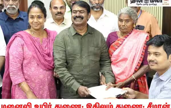 சென்னை: மாற்று வேட்பாளராக மனைவியை தவிர கட்சியில் யாரும் இல்லையா? என்ற கேள்விக்கு, ” உயிர் துணை, அதனால் இதிலும் துணை” என நாம் தமிழர் கட்சி ஒருங்கிணைப்பாளர் சீமான் பதில் அளித்துள்ளார்.