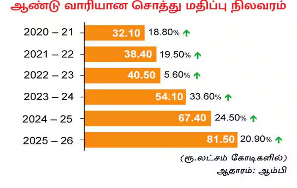 ஆண்டு வாரியான சொத்து மதிப்பு நிலவரம்: