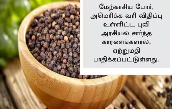 ஆனால், இந்தாண்டு மேற்காசிய போர், அமெரிக்க வரி விதிப்பு உள்ளிட்ட புவி அரசியல் சார்ந்த காரணங்களால், 40 சதவீத மிளகு ஏற்றுமதி பாதிக்கப்பட்டுள்ளது.