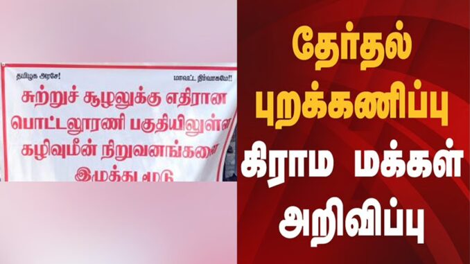 தூத்துக்குடி மாவட்த்தில் உள்ள பொட்டலூரணி கிராம மக்கள் தங்கள் பகுதியில் உள்ள 3 மீன் கழிவு நிறுவனங்களால் ஏற்படும் பாதிப்புகளைச் சுட்டிக்காட்டி, அவற்றை நிரந்தரமாக மூடக் கோரித் தொடர் போராட்டங்களை நடத்தி வருகின்றனர். இது தொடர்பாக நடைபெற்ற ஊர்க் கூட்டத்தில், பின்வரும் 21 அம்ச கோரிக்கைகளை வலியுறுத்தி தேர்தலைப் புறக்கணிக்க முடிவு எடுக்கப்பட்டுள்ளது.