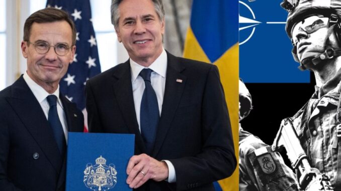 இந்நிலையில், கடந்தாண்டு பின்லாந்து நாடோ ராணுவ ஒப்பந்தத்தில் இணைந்து கொண்டது. அதைத் தொடர்ந்து ஸ்வீடன் தற்போது இணைந்துள்ளது. வட அட்லாண்டிய ஒப்பந்த நடைமுறைகளை நிறைவு செய்தபின், அதிகாரப்பூர்வமாக நேட்டோவில் இணைந்துவிட்டதாக ஸ்வீடனின் பிரதமர் உல்ஃப் கிறிஸ்டெர்சன் அறிவித்தார். அந்நிகழ்ச்சியில், அமெரிக்காவின் தலைமைச் செயலர் ஆண்டனி பிளின்கின் தலைமை தாங்கினார்.