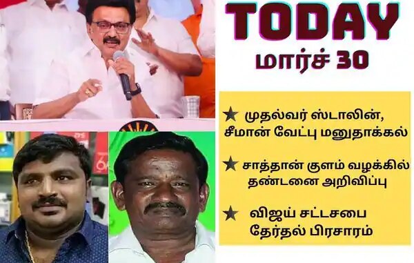முதல்வர் ஸ்டாலின், சீமான், வேட்பு மனு தாக்கல் முதல் சாத்தான்குளம் வழக்கில் தண்டனை அறிவிப்பு வரை; இன்றைய முக்கிய நிகழ்வுகள் (மார்ச் 30)!
