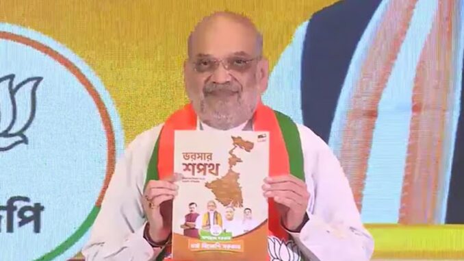 மேற்கு வங்காளத்தில் தொடர்ந்து மூன்று முறை ஆட்சியில் இருக்கும் மம்தா பானர்ஜி இந்த முறையும் வெற்றி பெற்று ஆட்சியை தக்கவைக்க தீவிரம் காட்டி வருகிறார். அதே நேரத்தில் பாஜக ஆட்சியை பிடிக்க முழு வீச்சில் தேர்தல் பணியாற்றி வருகிறது. சட்டமன்றத் தேர்தலை முன்னிட்டு இன்று பாஜக தனது தேர்தல் வாக்குறுதி அறிக்கையை வெளியிட்டுள்ளது.