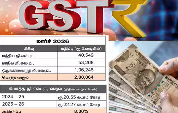 புதுடில்லி: கடந்த மார்ச் மாதம், நாட்டின் மொத்த ஜி.எஸ். டி., வசூல் 8.80 சதவீதம் உயர்ந்து இரண்டு லட்சம் கோடி ரூபாயை கடந்துள்ளதாக, நிதியமைச்சகம் வெளியிட்டுள்ள தரவுகளில் தெரிவிக்கப்பட்டுள்ளது. இது கடந்தாண்டு மார்ச்சில் 1.84 லட்சம் கோடி ரூபாயாக இருந்தது.
