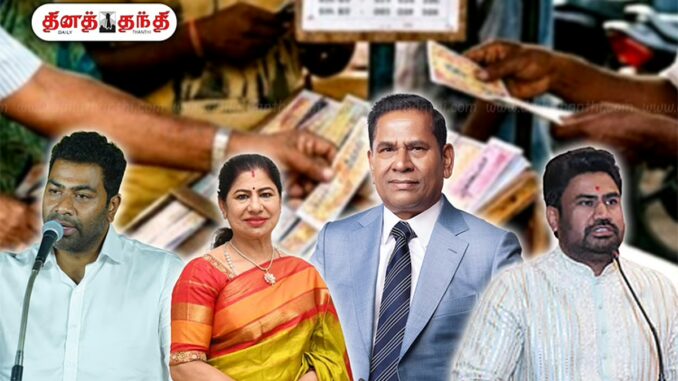 இதன் மூலம் லாட்டரி மார்ட்டின் குடும்பத்தினர் 3 பேர், 3 கட்சிகளில் 4 தொகுதிகளில் களமிறங்கியுள்ளனர்.
